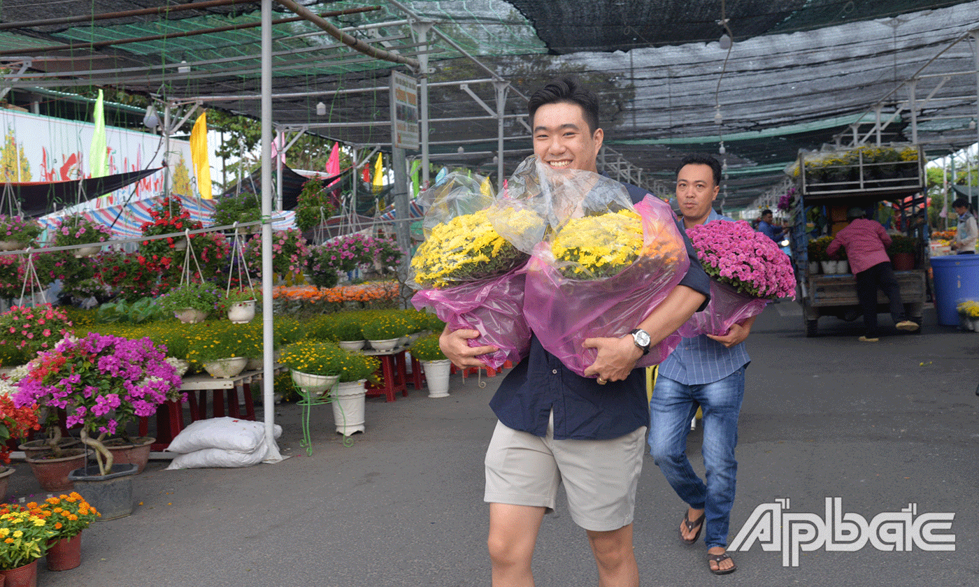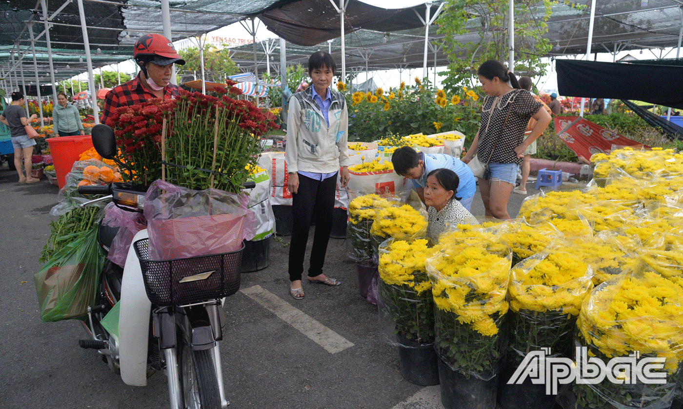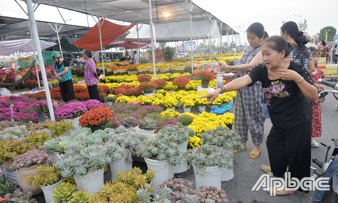 | Chợ hoa Xuân tại TP. Mỹ Tho đang trở nên nhộn nhịp. |