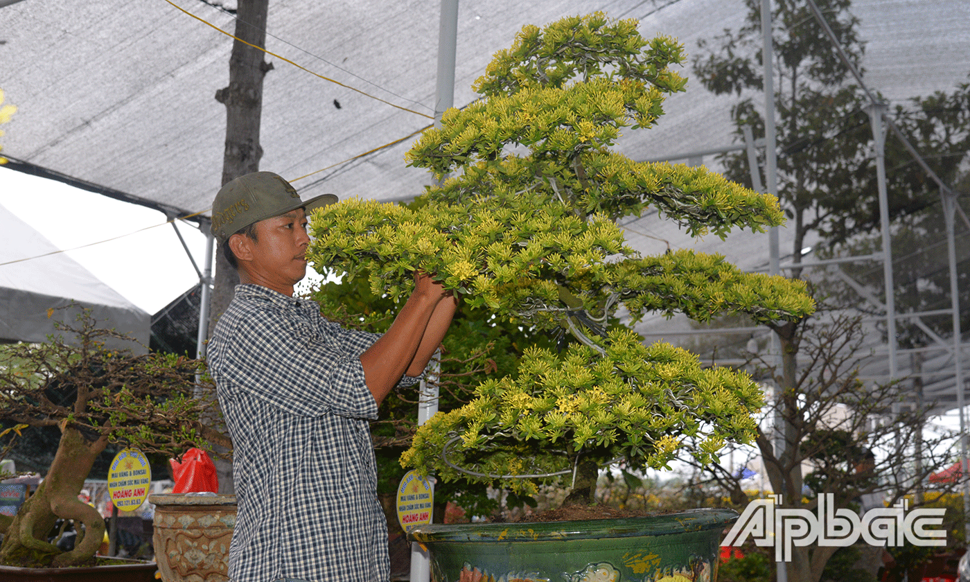 Đến với Chợ hoa Xuân năm nay, ngoài các loại kiểng bon sai mi ni làm chủ lực, anh Lê Tấn Thanh Bình, nhà vườn linh sam hồng Ngọc Ánh, xã Xuân Đông, huyện Chợ Gạo cho biết: "Năm nay, tôi còn bán thêm mai vàng và những chậu hoa sứ. Còn các loại cây linh sam bonsai mi ni rất phù hợp chưng trong các ngày tết. Những chậu kiểng nhỏ nhỏ xinh xinh có thể chưng trên bàn trà rất đẹp. Tôi mong sức mua tiếp tục tăng trong những ngày tới".