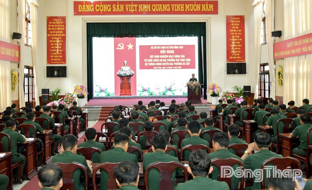 (ĐTO) Ngày 14-4, Bộ Chỉ huy Quân sự (CHQS) tỉnh Đồng Tháp tổ chức Hội nghị rút kinh nghiệm hoạt động của tổ chức quân sự địa phương khi thực hiện mô hình chính quyền địa phương 2 cấp.