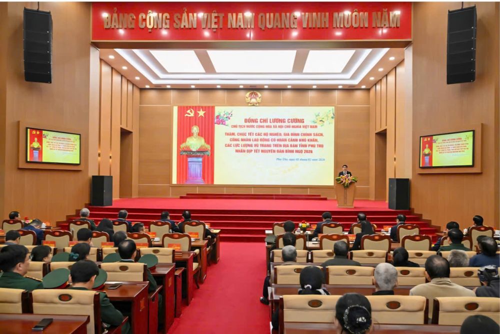 Trước thềm Tết cổ truyền của dân tộc, Chủ tịch nước đề nghị cấp ủy, chính quyền các cấp tỉnh Phú Thọ tiếp tục quán triệt sâu sắc, tổ chức thực hiện nghiêm túc, chặt chẽ các chủ trương, chính sách của Đảng, Nhà nước về chăm lo đời sống nhân dân, tổ chức Tết Bính Ngọ năm 2026 bảo đảm vui tươi, lành mạnh, an toàn, tiết kiệm, mọi người, mọi nhà đều được vui Xuân, đón Tết.
