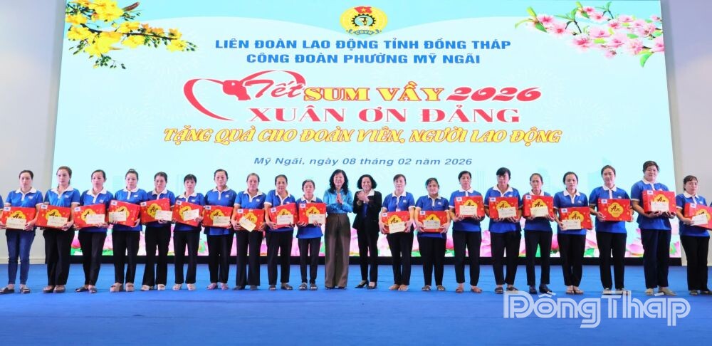 (ĐTO) Chiều 8-2, tại Công ty Cổ phần Vĩnh Hoàn (phường Mỹ Ngãi, tỉnh Đồng Tháp), Công đoàn phường Mỹ Ngãi phối hợp với Công đoàn cơ sở Công ty Cổ phần Vĩnh Hoàn tổ chức Chương trình “Tết sum vầy - Xuân ơn Đảng” năm 2026.