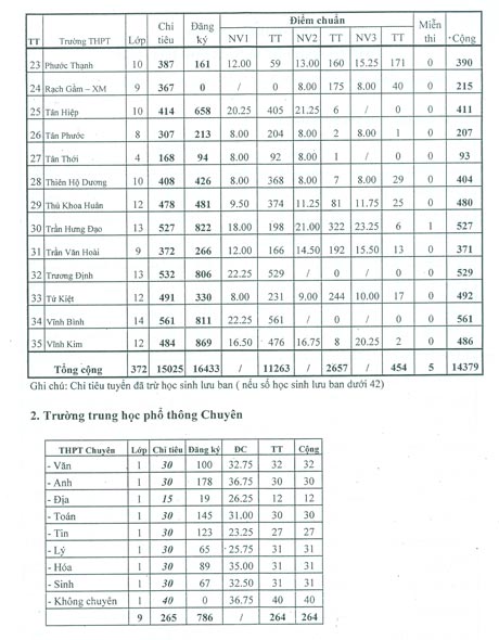 Trường THPT Chuyên Tiền Giang cũng đã công bố điểm chuẩn trúng tuyển và chỉ tiêu cụ thể vào các lớp chuyên và lớp không chuyên của trường.