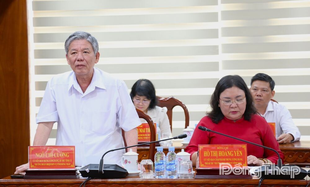 Tham dự hội nghị có đồng chí Ngô Chí Cường, Ủy viên Ban Chấp hành Trung ương Đảng, Bí thư Tỉnh ủy Đồng Tháp; đồng chí Hồ Thị Hoàng Yến, Ủy viên Ban Chấp hành Trung ương Đảng, Phó Bí thư Thường trực Tỉnh ủy Vĩnh Long.