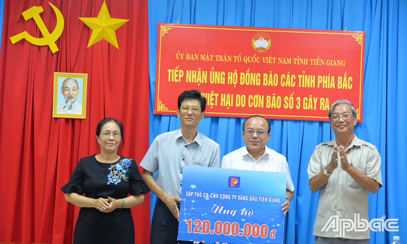 | Công ty Xăng dầu Tiền Giang ủng hộ 2 đợt cho đồng bào bị thiệt hại do bão số 3. |