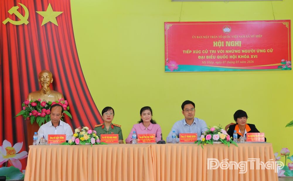 (ĐTO) Chiều 7-3, Ủy ban MTTQ Việt Nam tỉnh Đồng Tháp tổ chức Hội nghị tiếp xúc cử tri với các ứng cử viên đại biểu Quốc hội (ĐBQH) khóa XVI, nhiệm kỳ 2026 – 2031 thuộc đơn vị bầu cử số 2 tại xã Mỹ Hiệp và Bình Hàng Trung.