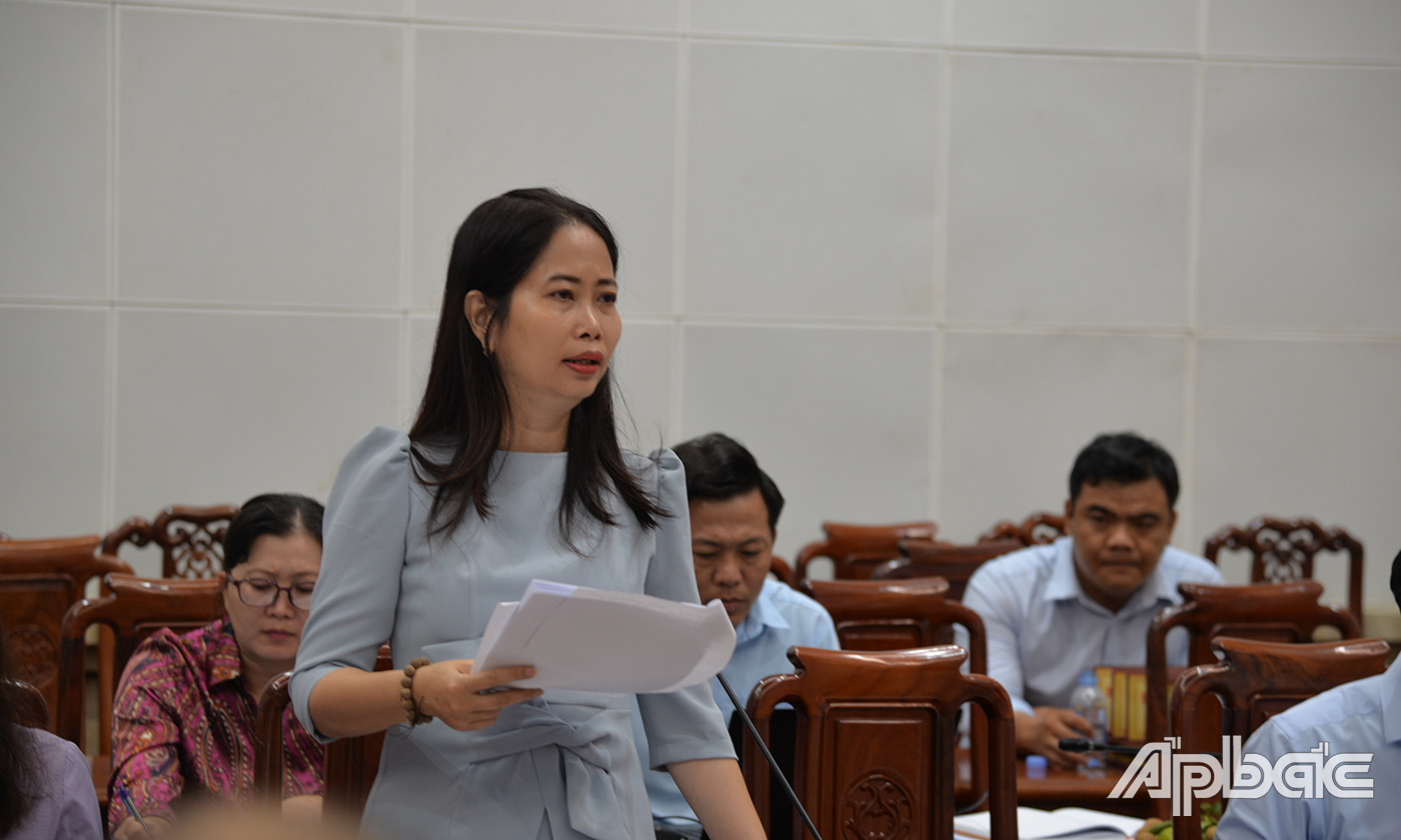 | Giám đốc Sở VHTT&DL tỉnh Tiền Giang Nguyễn Thị Uyên Trang phát biểu tại hội nghị. |