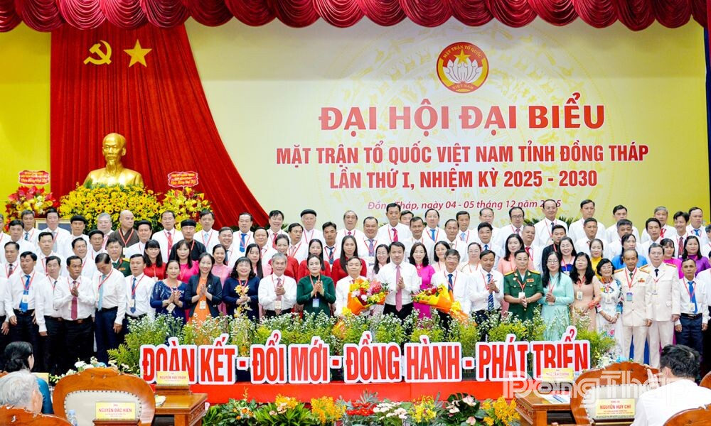 Đại hội đại biểu Mặt trận Tổ quốc (MTTQ) Việt Nam tỉnh Đồng Tháp lần thứ I, nhiệm kỳ 2025 - 2030, đã diễn ra trong bầu không khí đoàn kết, dân chủ và kỳ vọng. Với tinh thần “Đoàn kết - Đổi mới - Đồng hành - Phát triển”, Đại hội đánh dấu một bước chuyển quan trọng - vừa tổng kết chặng đường nỗ lực vượt khó của nhiệm kỳ 2024 - 2029, vừa mở ra kỷ nguyên mới cho công tác Mặt trận trong bối cảnh tỉnh nhà đang hướng đến mô hình phát triển năng động, bền vững và hiện đại.