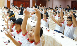 Thương hiệu Sony vừa tổ chức chương trình “Tìm hiểu khoa học cùng Sony” lần thứ 4 tại Việt Nam với chủ đề "Khám phá cách thức hoạt động và cách lắp ráp máy ghi âm" với sự tham gia của hơn 180 em học sinh lớp 5 đến từ 6 trường tiểu học: Hòa Bình, Nguyễn Thái Bình, Nguyễn Thái Học, Phan Văn Trị, Trần Quang Khải và Trần Khánh Dư (TP. Hồ Chí Minh).