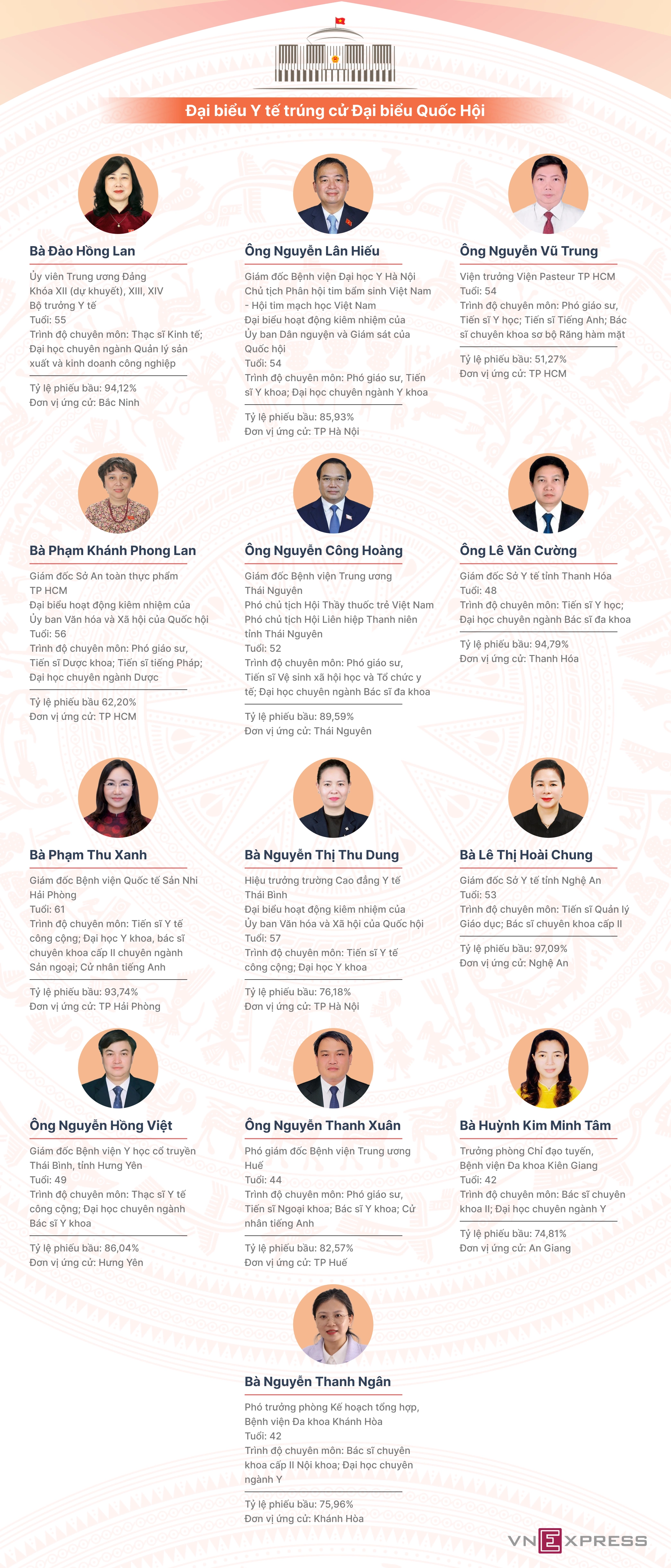 Bộ trưởng Y tế Đào Hồng Lan cùng 12 lãnh đạo sở y tế và bệnh viện vừa được bầu làm đại biểu Quốc hội khóa 16 nhiệm kỳ 2026-2031.