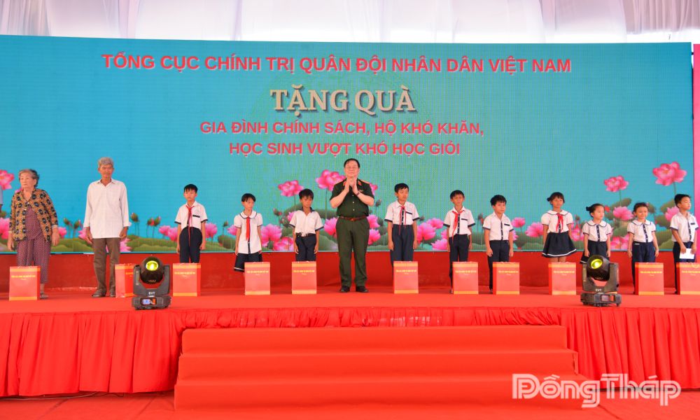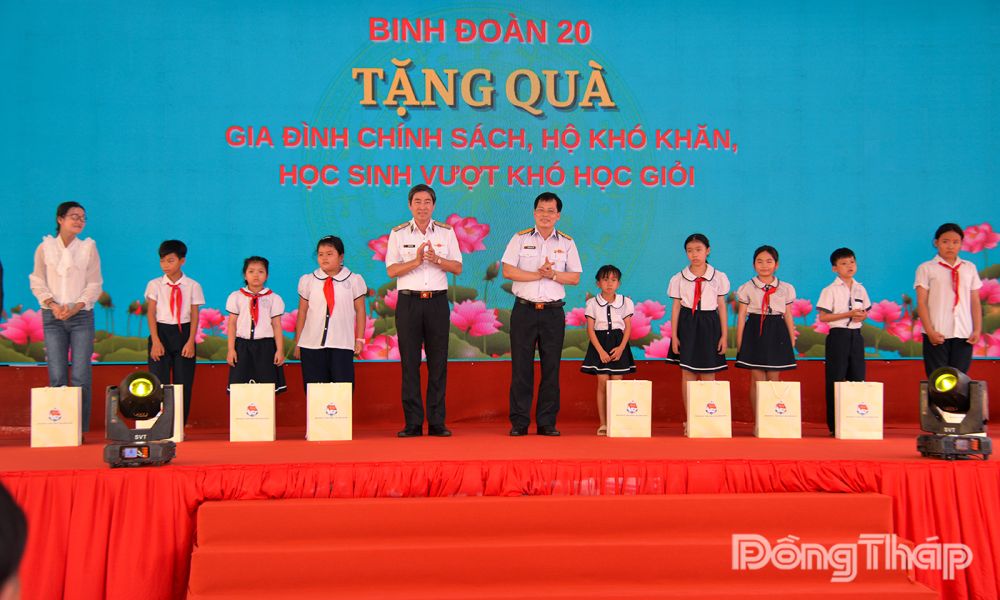 Dịp này, Tổng Cục Chính trị Quân đội Nhân dân Việt Nam và Binh đoàn 20 đã trao 200 phần quà tặng gia đình chính sách, hộ khó khăn, học sinh nghèo vượt khó học giỏi với trị giá 300 triệu đồng. Đảng ủy - Bộ Tư lệnh Bộ đội Biên phòng, Đảng ủy - Bộ Tư lệnh Cảnh sát biển có những phần quà tặng nhà trường.