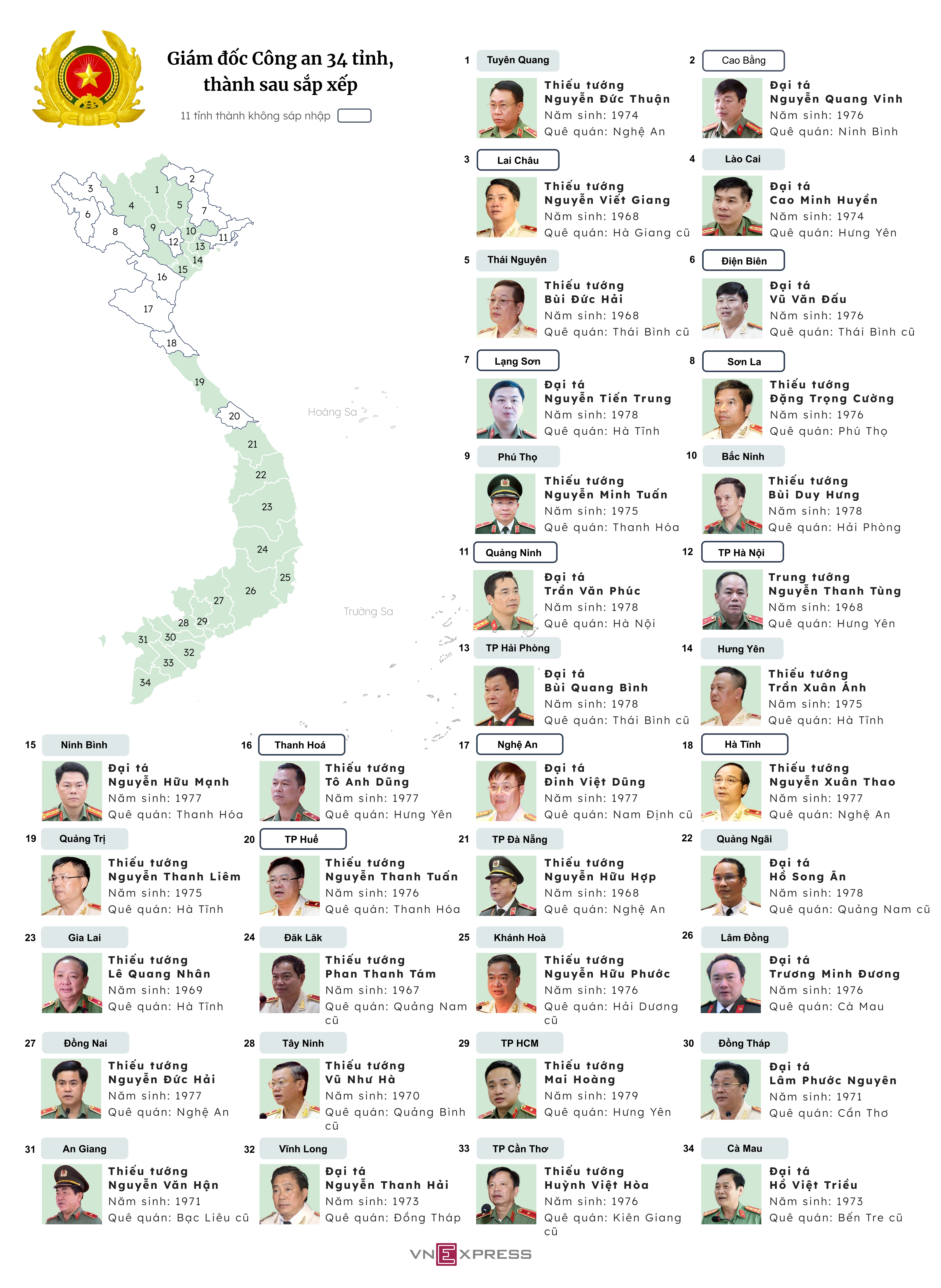 Danh sách giám đốc công an 34 tỉnh, thành