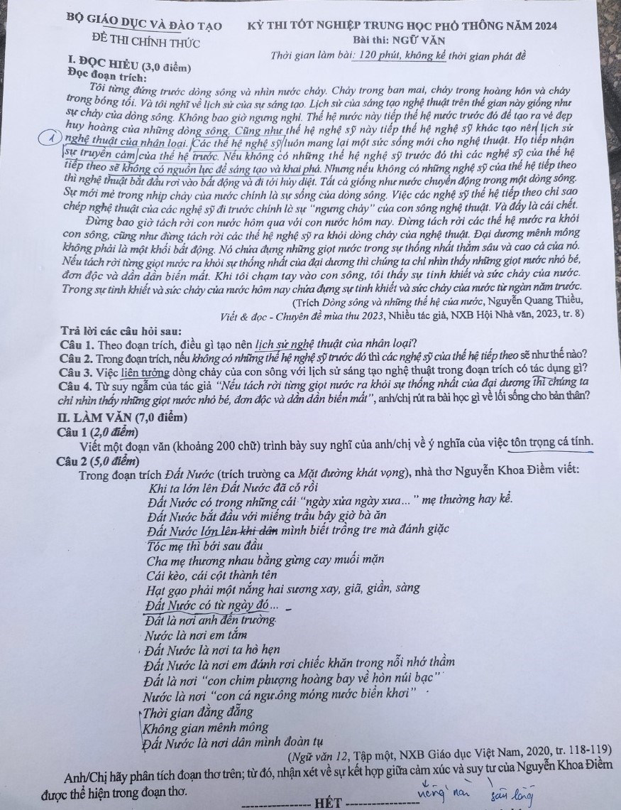 Đề thi môn Ngữ văn thi tốt nghiệp THPT năm 2024
