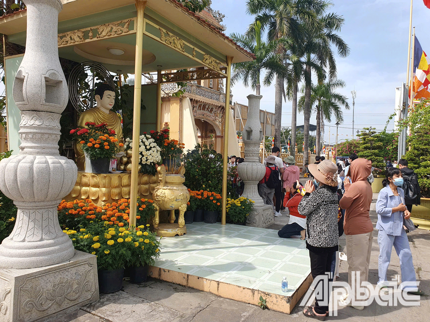 Tại các ngôi chùa nổi tiếng trên địa bàn tỉnh Tiền Giang như: Vĩnh Tràng, Bửu Lâm, Sắc Tứ, Thiền Viện Trúc Lâm Chánh Giác…, người dân và du khách náo nức đi lễ chùa. Nhiều ngôi chùa đã bố trí nơi để xe, người trông xe cho khách viếng chùa; đồng thời, bố trí phật tử, thanh niên phục vụ hướng dẫn khách tham quan, cúng viếng chùa chu đáo, nhiệt tình.