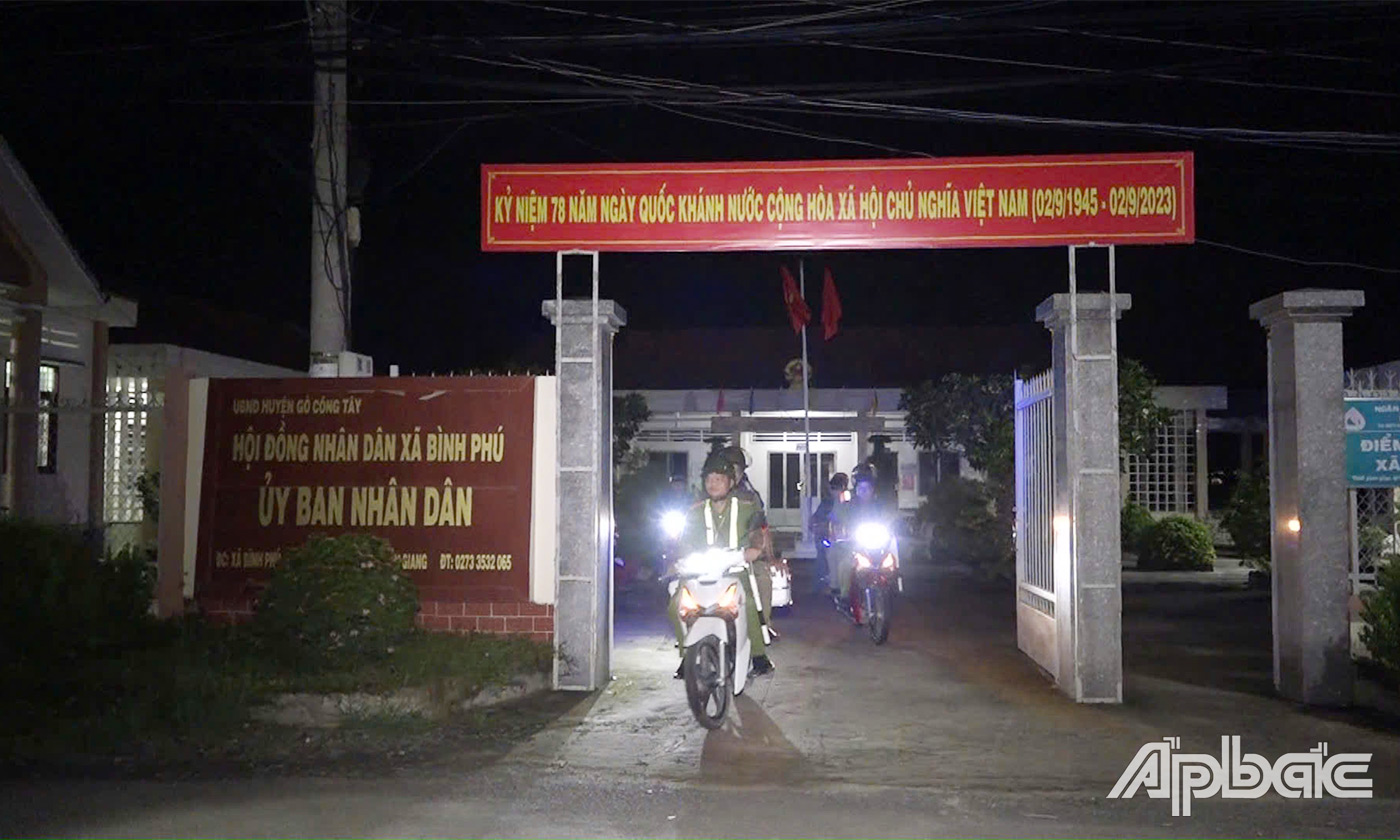 | Lực lượng công an xã Bình Phú phối hợp các đơn vị liên quan thường xuyên tuần tra, kiểm soát đảm bảo tình hình an ninh, trật tự trên địa bàn xã được giữ vững. |
