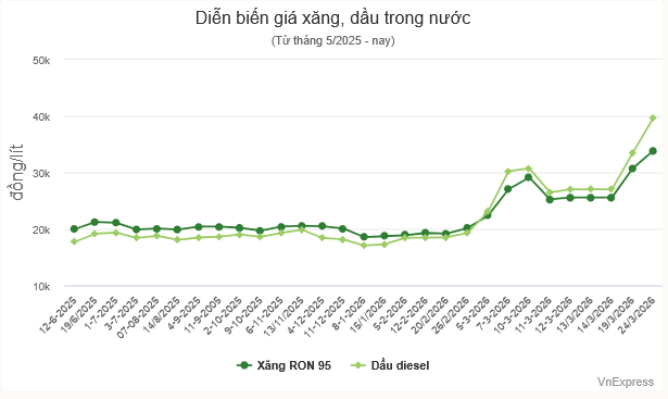Dầu diesel | 39.660 | + 6.240 |