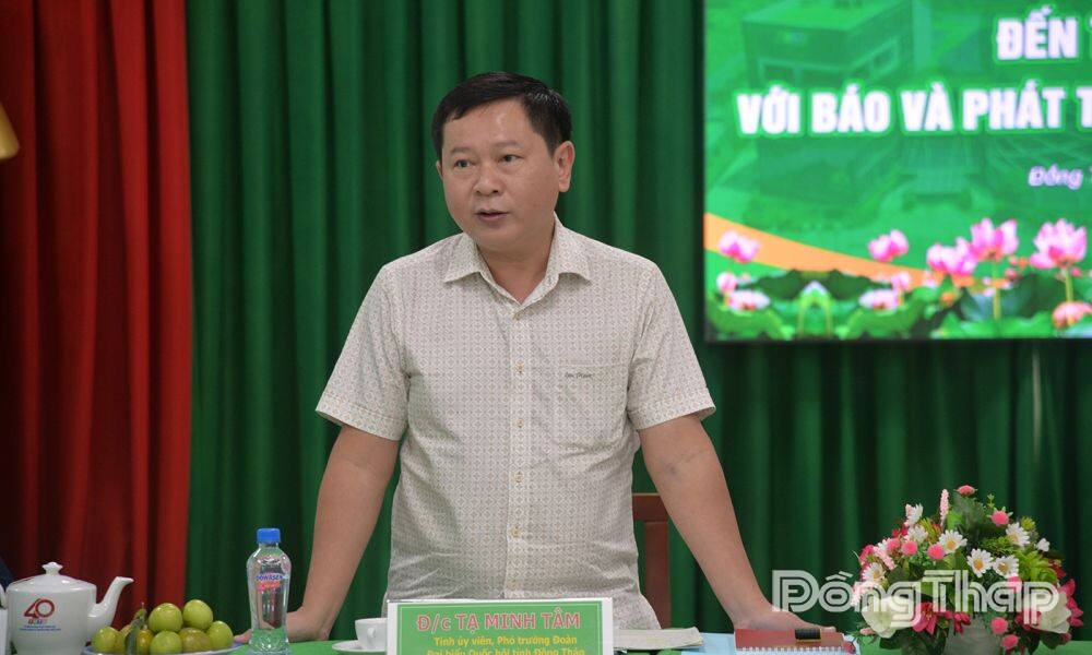 Phát biểu tại buổi làm việc, đồng chí Tạ Minh Tâm đánh giá cao vai trò của Báo và PTTH Đồng Tháp trong việc kết nối tiếng nói của Đoàn ĐBQH tỉnh với cử tri.