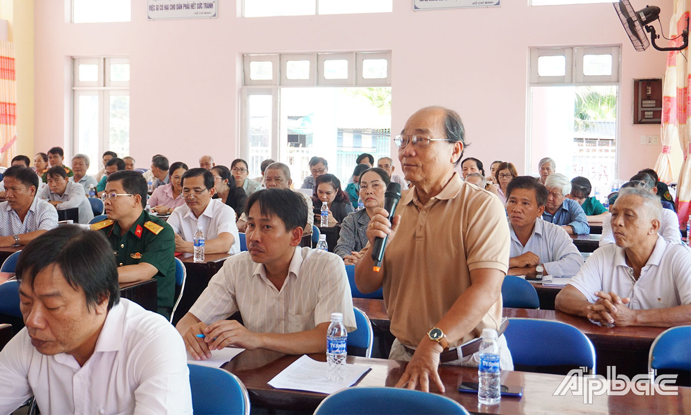 | Cử tri tham gia ý kiến tại buổi tiếp xúc. |