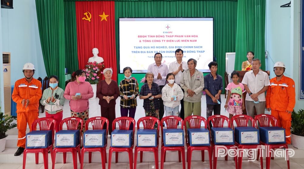 (ĐTO) Ngày 8-2, Đoàn đại biểu Quốc hội (ĐBQH) tỉnh Đồng Tháp phối hợp với Tổng Công ty Điện lực miền Nam (EVNSPC) tổ chức chương trình thăm, tặng quà tết cho các hộ gia đình có hoàn cảnh khó khăn trên địa bàn các xã: Tân Phú Trung, Tân Dương và Hòa Long.