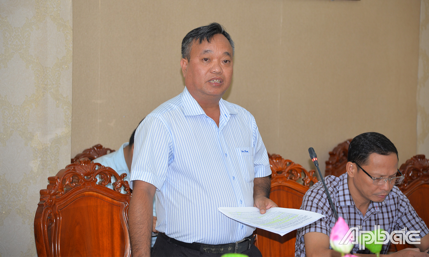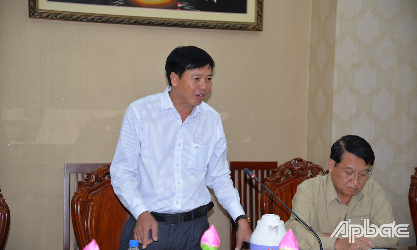 | Đồng chí Nguyễn Hữu Lợi, Tỉnh ủy viên, Phó Chủ tịch HĐND tỉnh phát biểu tại buổi làm việc. |