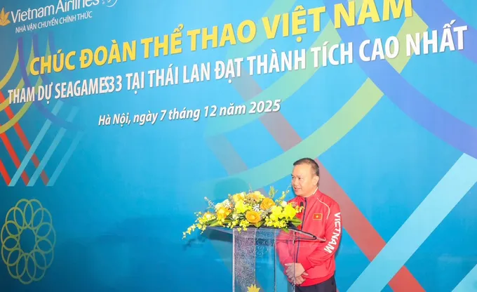 Trong lễ tiễn Đoàn thể thao Việt Nam sang Thái Lan tham dự SEA Games 33-2025, Cục trưởng Cục TDTT Việt Nam - ông Nguyễn Danh Hoàng Việt động viên các thành viên có tinh thần tốt nhất, hướng tới đạt các kết quả chuyên môn như đề ra.