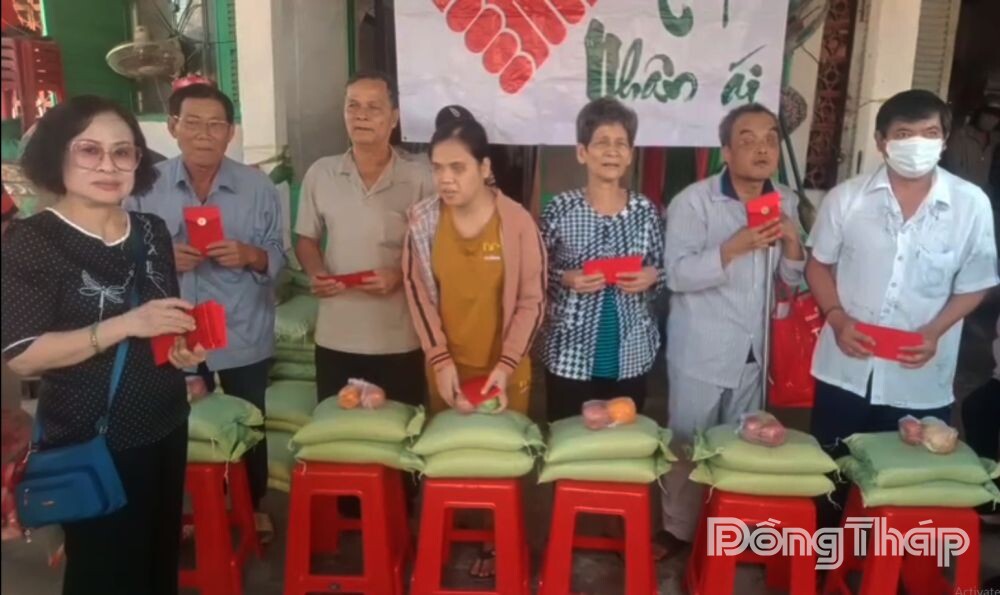 Cũng trong ngày 27-1, chị Vũ Thị Ngọc Trinh - đại diện gia đình cô giáo Nhuế (quê quán xã Long Khánh, tỉnh Đồng Tháp) đang làm việc, sinh sống tại TP. Hồ Chí Minh tổ chức trao tặng 70 phần quà tết (trị giá 1.150.000 đồng/phần) cho người mù trên địa bàn phường Hồng Ngự, tỉnh Đồng Tháp.
