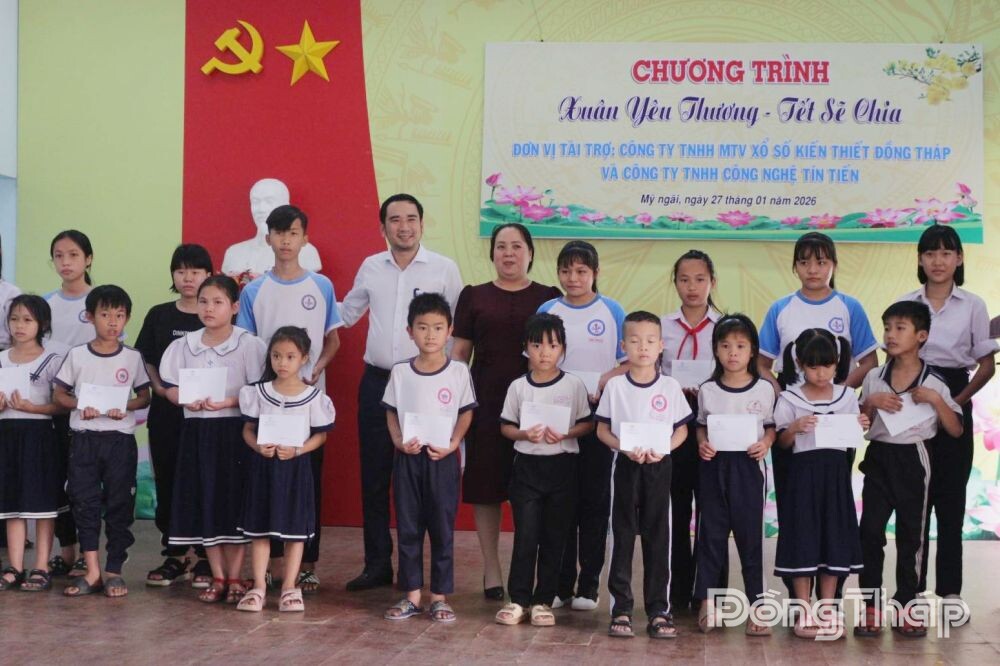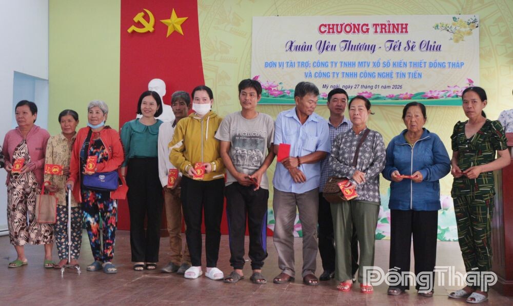 Tại chương trình, lãnh đạo Công ty TNHH Công nghệ Tín Tiến tặng 60 phần quà (trị giá 500.000 đồng/phần) cho học sinh nghèo trên địa bàn phường; Công ty TNHH MTV Xổ số kiến thiết Đồng Tháp tặng 40 phần quà (500.000 đồng/phần) cho hộ nghèo, khó khăn bán vé số.