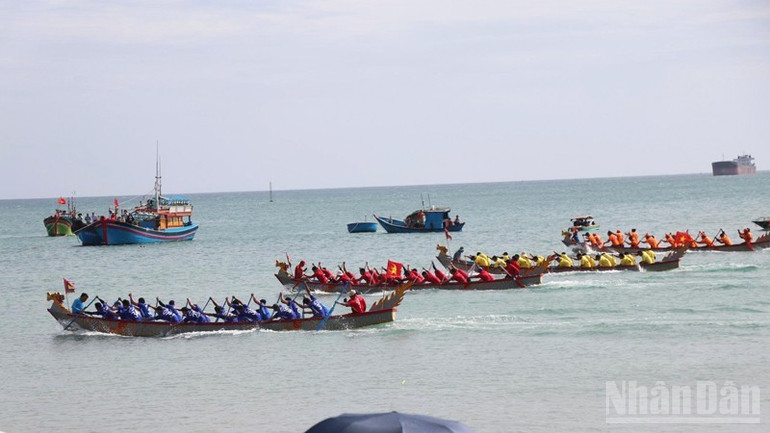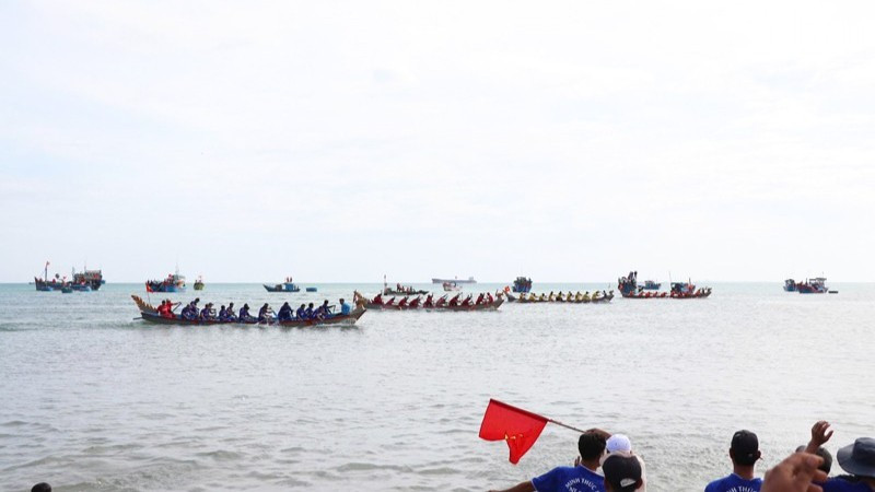 Những tiếng hò dô, những tràng pháo tay, tiếng trống thúc giục như tiếp thêm lửa cho từng mái chèo. Không khí tưng bừng, rộn rã đậm sắc xuân, khiến cả vùng biển như chuyển mình theo từng nhịp đua.
