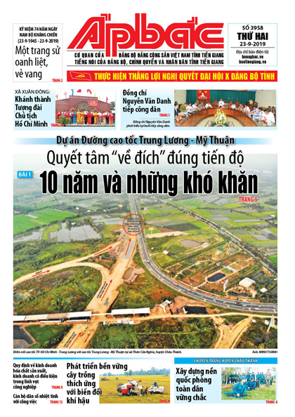 Sau nhiều khó khăn vướng mắc, Dự án Đường cao tốc Trung Lương - Mỹ Thuận đã bắt nhịp “vào guồng”. Lãnh đạo tỉnh Tiền Giang cùng nhà đầu tư đang nỗ lực đảm bảo tiến độ để dự án không “lỗi hẹn” với người dân Đồng bằng sông Cửu Long theo tinh thần chỉ đạo của Thủ tướng Chính phủ. Bài 1: 10 năm và những khó khăn (xem trang 5).