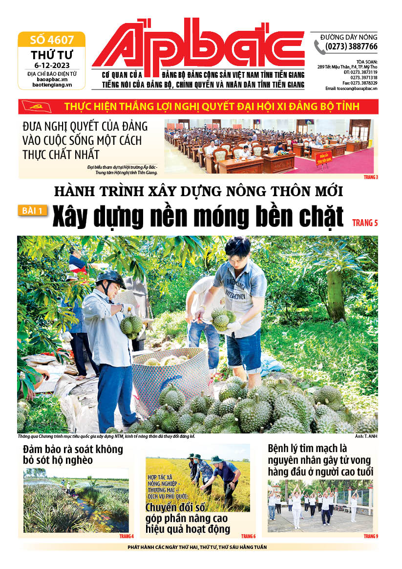 Mời độc giả đón đọc Báo Ấp Bắc số ra ngày 6-12, với những thông tin nổi bật.