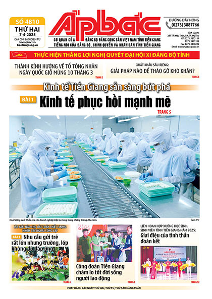 Trải qua giai đoạn khó khăn do đại dịch Covid-19 và suy thoái kinh tế, song với những giải pháp quyết liệt cùng sự chỉ đạo sâu sát, kịp thời của Tỉnh ủy, điều hành linh hoạt của UBND tỉnh, kinh tế Tiền Giang đã từng bước phục hồi tích cực. Kinh tế Tiền Giang sẵn sàng bứt phá. Bài 1: Kinh tế phục hồi mạnh mẽ (xem trang 5).
