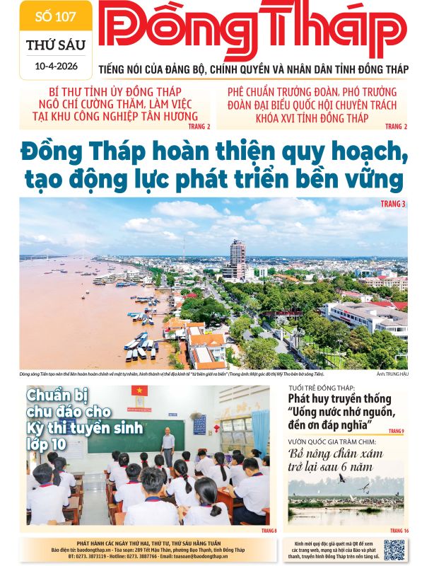 Đón đọc Báo Đồng Tháp số ra ngày 10-4-2026