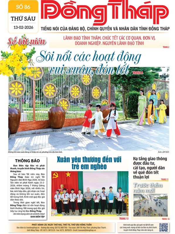 Đón đọc Báo Đồng Tháp số ra ngày 13-2-2026.
