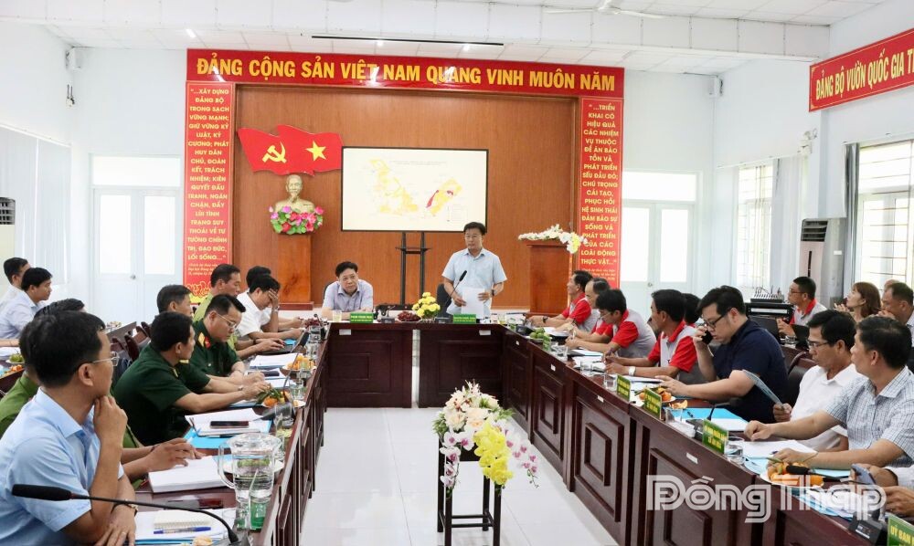 Sau kiểm tra thực tế, Đoàn công tác đã có buổi làm việc với lãnh đạo VQG Tràm Chim. Báo cáo tại buổi làm việc cho thấy, ngay từ đầu mùa khô năm 2026, đơn vị đã chủ động triển khai các biện pháp phòng cháy, chữa cháy rừng; kiện toàn Ban Chỉ huy; phân công nhiệm vụ cụ thể; bố trí lực lượng trực 24/24 tại các trạm, chòi canh và đài quan sát.