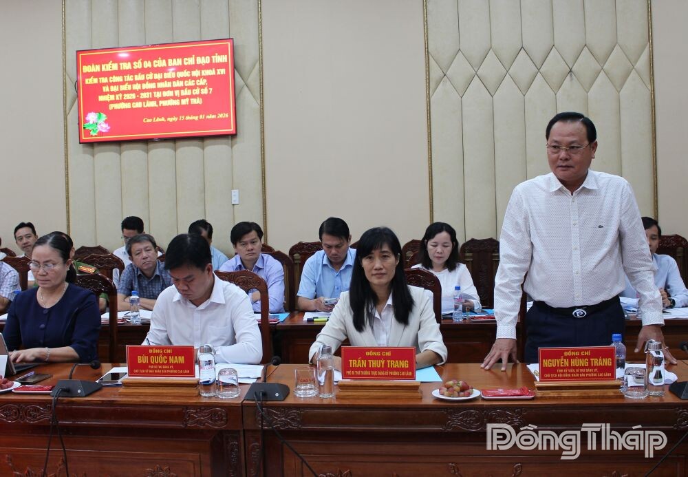 (ĐTO) Sáng 15-1, Đoàn kiểm tra số 4 của Ban Chỉ đạo về bầu cử đại biểu Quốc hội khóa XVI và đại biểu HĐND các cấp, nhiệm kỳ 2026 - 2031 tỉnh Đồng Tháp do đồng chí Phan Văn Thắng, Phó Bí thư Tỉnh ủy, Chủ tịch Ủy ban Mặt trận Tổ quốc Việt Nam tỉnh Đồng Tháp làm Trưởng đoàn đến kiểm tra công tác bầu cử đối với Đảng ủy 2 phường: Mỹ Trà, Cao Lãnh.