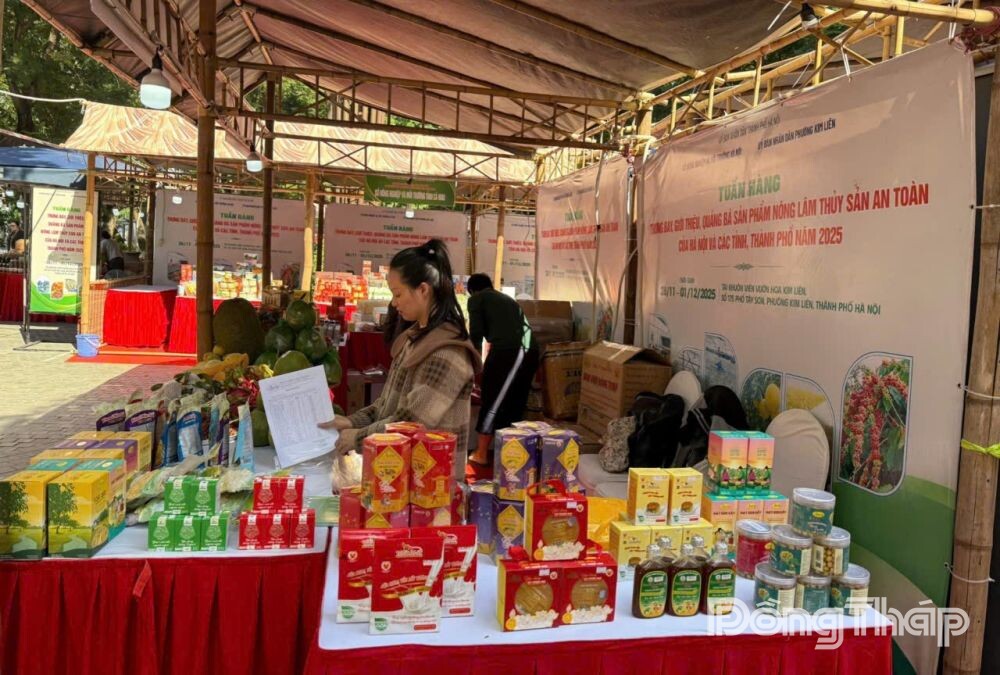 (ĐTO) Trong khuôn khổ Tuần hàng trưng bày, giới thiệu, quảng bá sản phẩm nông - lâm - thủy sản an toàn của Hà Nội và các tỉnh, thành phố năm 2025, diễn ra từ ngày 28-11 đến 1-12 tại Khuôn viên Vườn hoa Kim Liên, phường Kim Liên, Hà Nội, Sở Nông nghiệp và Môi trường tỉnh Đồng Tháp tham gia với gian hàng trưng bày đa dạng sản phẩm đặc trưng, an toàn, chất lượng, thu hút đông đảo người dân Thủ đô và khách tham quan.
