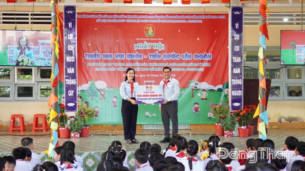 Dịp này, Ban Thường vụ Tỉnh đoàn, Hội đồng Đội tỉnh Đồng Tháp trao tặng 20 phần quà cho các em đội viên, học sinh vượt khó học tốt; đồng thời, trao tặng Liên đội 500 khăn quàng đỏ và 200 tờ báo Đội nhằm duy trì hiệu quả phong trào “Đọc và làm theo báo Đội”.