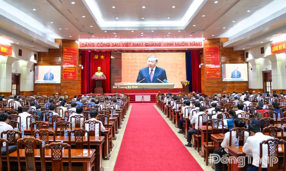 Dự tại điểm cầu tỉnh Đồng Tháp có đồng chí Ngô Chí Cường, Ủy viên Ban Chấp hành Trung ương Đảng, Bí thư Tỉnh ủy, Chủ tịch HĐND tỉnh; cùng các đồng chí nguyên Bí thư Tỉnh ủy, nguyên Phó Bí thư Tỉnh ủy, nguyên Ủy viên Ban Thường vụ Tỉnh ủy; lãnh đạo các sở, ngành…