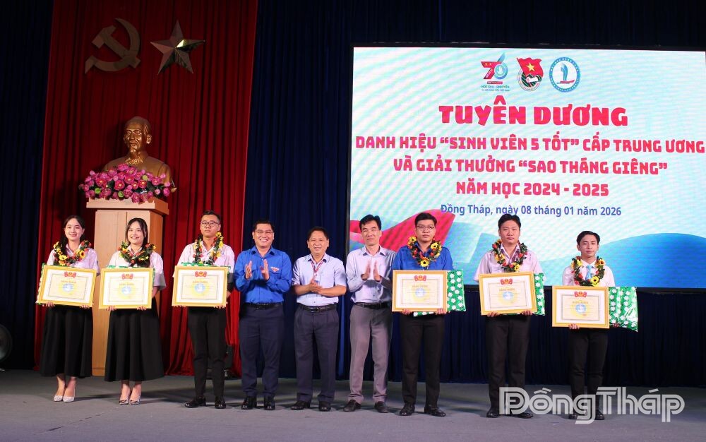 Dịp này, Ban Thường vụ Tỉnh đoàn, Ban Thường vụ Đoàn trường, Hội SV Việt Nam Trường Đại học Đồng Tháp tuyên dương danh hiệu “SV 5 tốt”, Giải thưởng Sao Tháng Giêng năm 2025 cấp Trung ương và cấp trường cho SV.