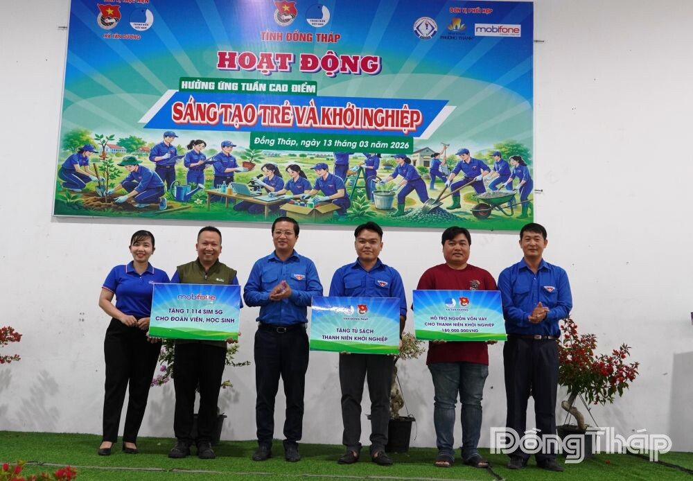 (ĐTO) Sáng 13-3, Ban Thường vụ Tỉnh đoàn Đồng Tháp, Đảng ủy xã Tân Dương phối hợp với Đoàn Thanh niên, Ủy ban Hội Liên hiệp Thanh niên Việt Nam xã Tân Dương tổ chức Hoạt động hưởng ứng Tuần cao điểm “Sáng tạo trẻ và Khởi nghiệp” trong Tháng Thanh niên năm 2026. Đây là địa phương được Tỉnh đoàn Đồng Tháp chọn hoạt động điểm cấp tỉnh.