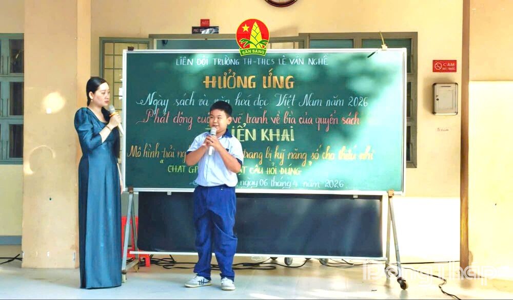 Cô Lê Hồng Nhung, nhân viên thư viện Trường Tiểu học - THCS Lê Văn Nghề, cho biết: “Hưởng ứng Ngày Sách và Văn hóa đọc năm 2026, Liên đội nhà trường đã tổ chức các cuộc thi “Đại sứ văn hóa đọc” và “Vẽ tranh bìa cuốn sách em yêu”, thu hút đông đảo học sinh tham gia.