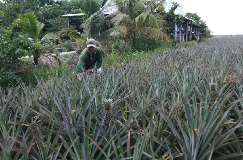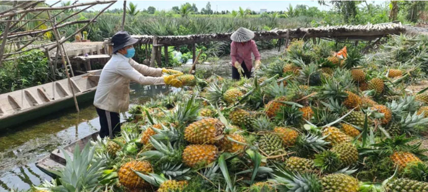 Nông dân Trần Văn Lo (xã Tân Phước 1, tỉnh Đồng Tháp) có gần 40 năm trồng khóm trên đất nhiễm phèn này cho biết, chưa bao giờ nông dân vùng khóm chuyên canh đối mặt với khó khăn như lúc này. Giá phân bón tăng từ 15-20% so với tháng trước, trong khi giá khóm thương phẩm đang giảm còn khoảng 6.000 đồng/kg (loại 1). Tình hình sản xuất như vậy thì nông dân không có lời hoặc lỗ vốn vì không thể bỏ ruộng khóm bạc màu dần mà phải canh tác thường xuyên.