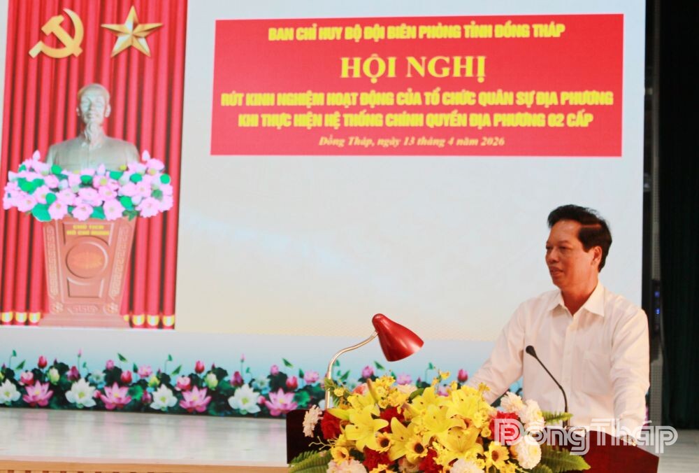 (ĐTO) Chiều 13-4, Ban Chỉ huy Bộ đội Biên phòng (BĐBP) tỉnh Đồng Tháp tổ chức Hội nghị rút kinh nghiệm hoạt động của tổ chức quân sự địa phương khi thực hiện chính quyền địa phương 2 cấp.