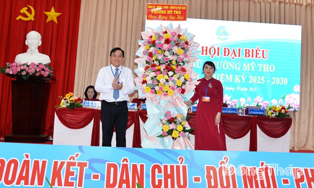 Phó Bí thư Thường trực Đảng ủy phường Mỹ Tho Đặng Hữu Lộc nhấn mạnh vai trò lãnh đạo của cấp ủy trong công tác phụ nữ. Hiện Hội LHPN phường có 37 chi hội với hơn 11.100 hội viên, đạt 72,86%.