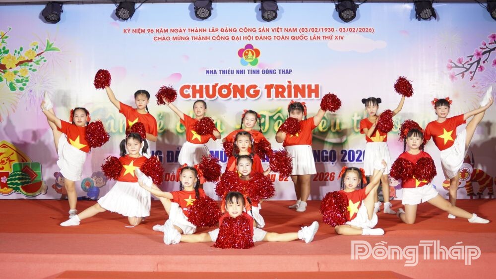 (ĐTO) Trong không khí hân hoan của những ngày đầu Xuân Bính Ngọ 2026 và chào mừng kỷ niệm 96 năm Ngày thành lập Đảng Cộng sản Việt Nam, đặc biệt là sự thành công của Đại hội Đảng toàn quốc lần thứ XIV, tối 3-2, được sự thống nhất của Ban Thường vụ Tỉnh đoàn, Hội đồng Đội tỉnh, Nhà Thiếu nhi tỉnh Đồng Tháp tổ chức Chương trình nghệ thuật “Xuân sẻ chia - Tết yêu thương” và hoạt động văn hóa, văn nghệ Mừng Đảng - Mừng Xuân Bính Ngọ năm 2026.