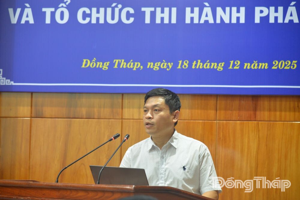 Phát biểu tại hội nghị, đồng chí Phạm Công Hùng, Giám đốc Sở Tư pháp tỉnh Đồng Tháp cho biết, hội nghị tập trung triển khai những điểm mới của Luật Ban hành văn bản quy phạm pháp luật (sửa đổi, bổ sung năm 2025) và các nghị quyết quan trọng của Quốc hội khóa XV, qua đó góp phần nâng cao chất lượng xây dựng, ban hành và tổ chức thi hành pháp luật trên địa bàn tỉnh.