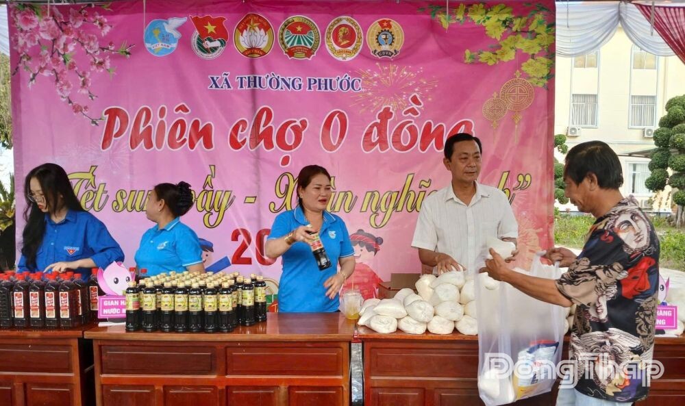 Tại xã biên giới Thường Phước, hình ảnh rất xúc động diễn ra với “Phiên chợ Xuân 0 đồng”. Khác với những phiên chợ tết ồn ào với người bán, người mua, mặc cả thêm bớt, phiên chợ này mang sắc thái hoàn toàn khác.