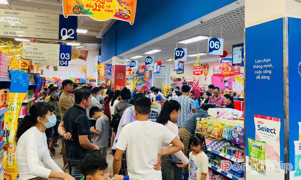 Tại Co.opmart Cao Lãnh (phường Cao Lãnh), lượng khách tăng 40% so với ngày thường, tập trung vào nhóm hàng thiết yếu. Trong đó, tập trung vào các nhóm hàng thiết yếu như lương thực, thực phẩm, bánh kẹo, đồ uống và các sản phẩm phục vụ sinh hoạt gia đình; trong đó, nhóm hàng phục vụ bữa ăn gia đình chủ yếu là hàng Việt Nam chất lượng cao, chiếm khoảng 90%. Siêu thị ưu tiên phân phối các sản phẩm OCOP, VietGAP, nông sản an toàn và hàng địa phương. Đồng thời, triển khai Chương trình bình ổn giá và khuyến mãi tết để kích cầu hoạt động mua sắm dịp tết.