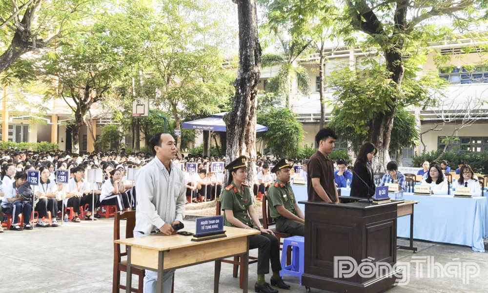 (ĐTO) Ngày 24-1, Tòa án nhân dân tỉnh Đồng Tháp phối hợp với Viện kiểm sát nhân dân tỉnh và Đoàn Thanh niên Cộng sản Hồ Chí Minh tỉnh tổ chức Phiên tòa giả định xét xử vụ án vi phạm quy định về tham gia giao thông đường bộ tại Trường THPT Trương Định, phường Long Thuận.