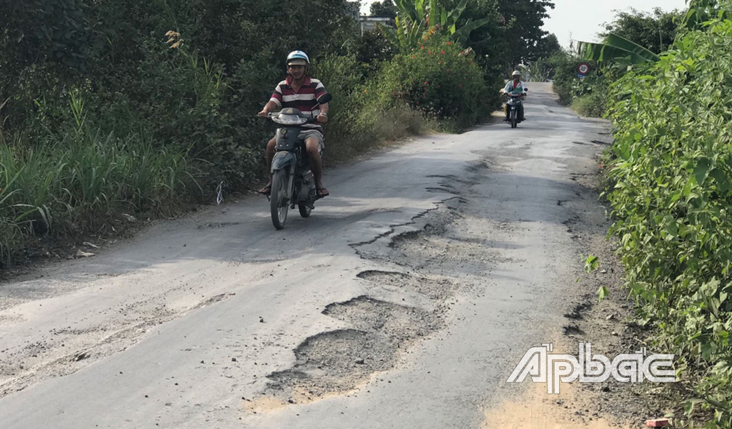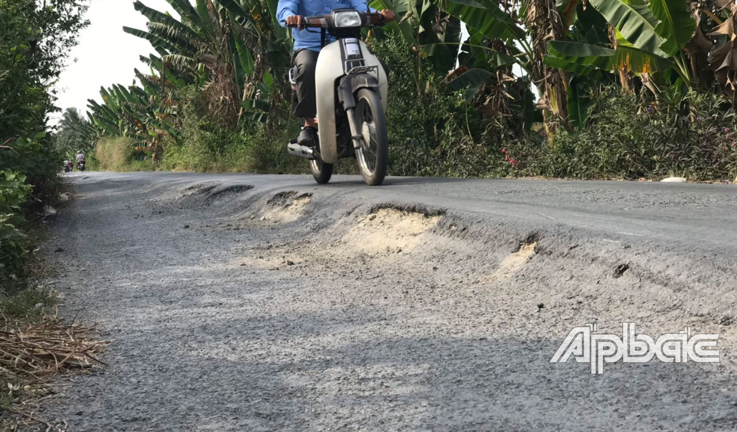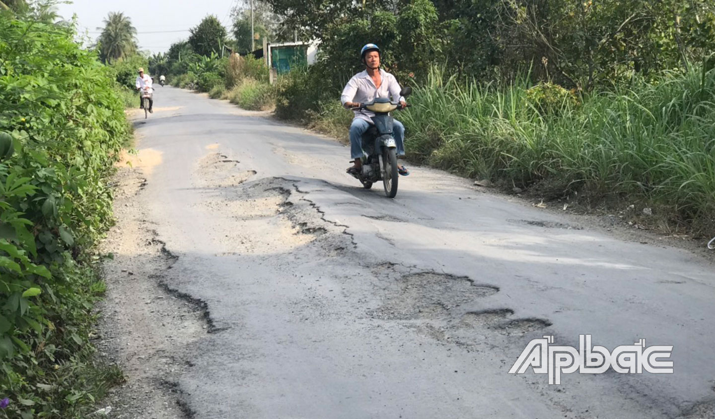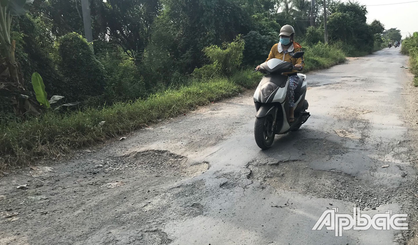 (ABO) Một số người dân ấp Mỹ Trung (xã Mỹ Hội, huyện Cái Bè, tỉnh Tiền Giang) bức xúc trước tình trạng đường huyện 72 dẫn vào xã nông thôn mới Mỹ Hội xuống cấp, mặt đường hư hỏng nặng, gây nguy hiểm cho người dân khi lưu thông.