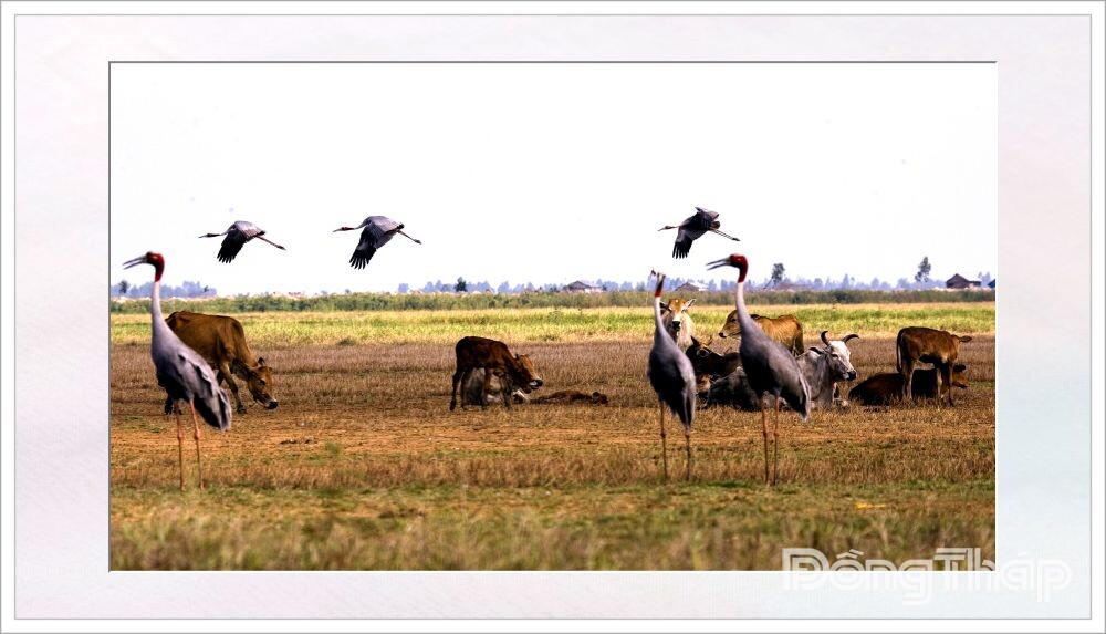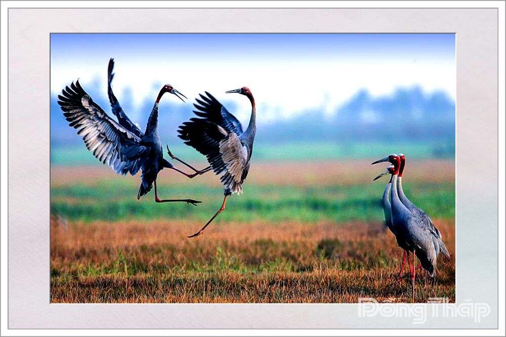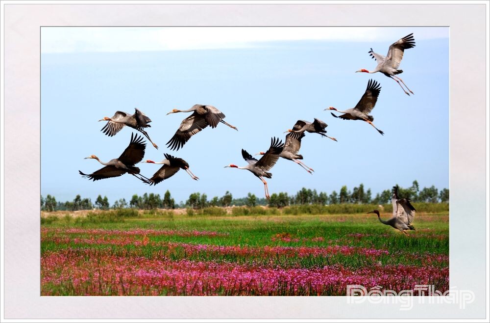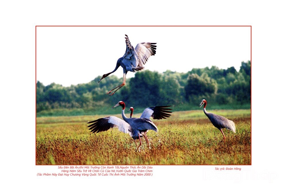 Hình ảnh sếu đầu đỏ giữa những rặng tràm, đồng cỏ xanh hay dưới bầu trời hoàng hôn của NSNA Đoàn Hồng mang ý nghĩa biểu trưng cho sự hài hòa giữa con người và thiên nhiên.